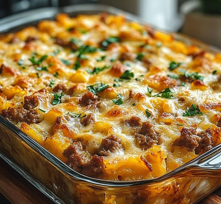 "En smakrik och mättande rätt! Med sina krispiga potatibitar, kryddiga korv och smälta ost är detta en generös frukost som är enkel att förbereda och som alltid går hem hos alla!"