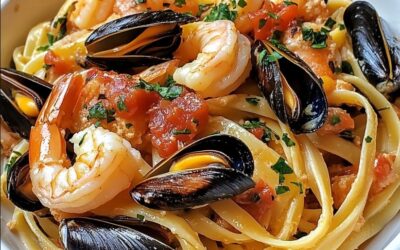 Ingredienser: 340 g linguine-pasta 450 g räkor, skalade och rensade 450 g blåmusslor, rengjorda 3 vitlöksklyftor, finhackade 1 dl körsbärstomater,…